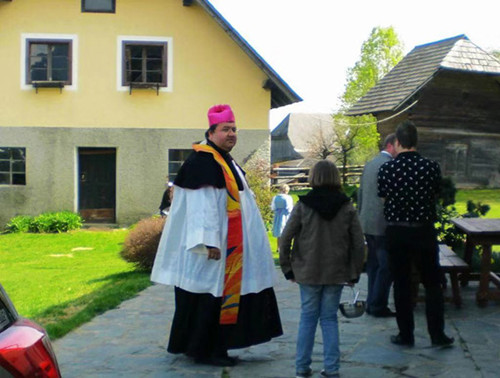 不一会,他们就到了山顶上被绿树掩映着的圣彼特教堂,不少人提着篮子往教堂走去,大胖子神父穿着节日华服早已候在路旁。