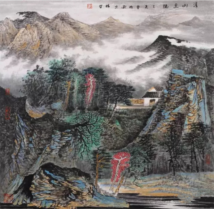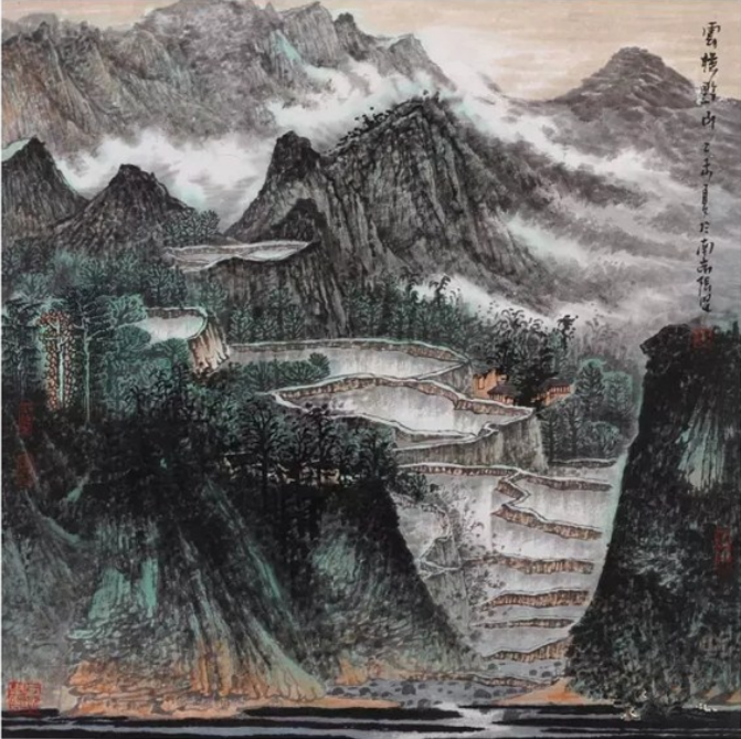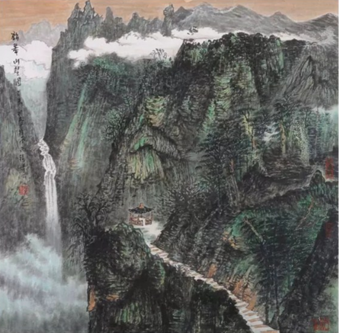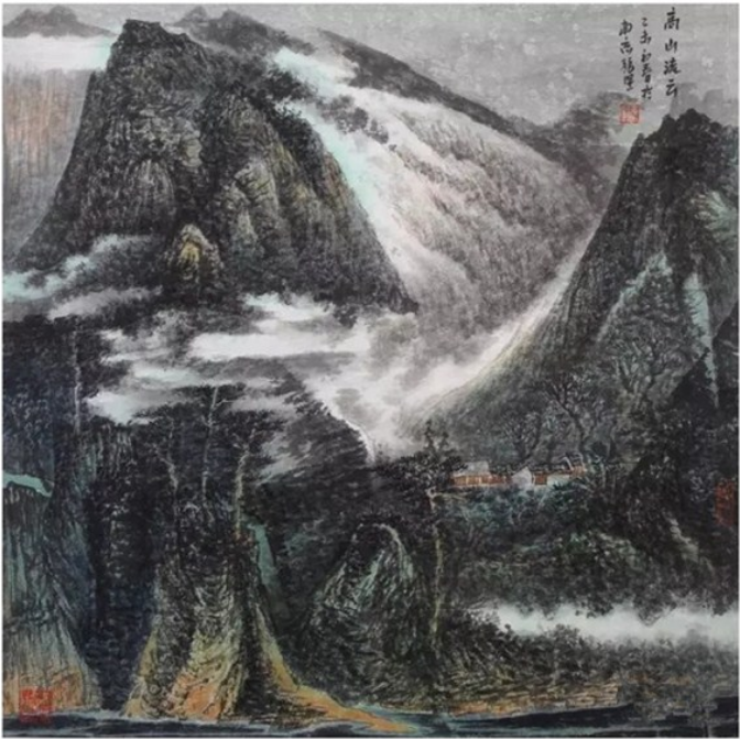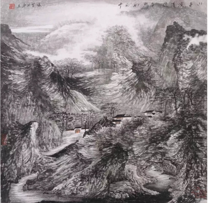 纵观古今画坛巨匠,他们无不尊重传统并从中汲取精华。张坚深谙此理,他从明清南派绘画入手,苦研笔墨,理正笔性,明了理法,绝邪甜俗赖之恶习,汲清雅明净之风神,并旁参王蒙,汲苍润之趣,吸疏密之理。近年上溯五代北宋,法董源之苍深,汲范宽之沉雄,并参与龚贤之积墨,从而令其笔墨既强其骨而雄健之力,又丰其肉而含清润之气,形成浑厚沉雄,苍润华滋的风貌。而这一风貌的形成,对他将南北画风融为一炉打下了坚实的笔墨基础。但张坚还清醒的认识到。对于传统要入乎其内,更需出乎其外,掌握理法更需不闻理法而予以超越。这无疑为他的融南北画风提供了理念依据。