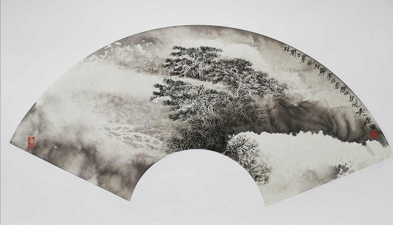 读他的作品,似乎总有一种游走于明末清初山林中的感觉,恍忽清代弘仁的身影缓缓走来,就像看见这位采众家之长的前人漫步清泉山涧,那一份“老年意孤成缩涩,乍见停云有会心。”的水墨融情的感慨会把你浮躁的心归于平静;又好像是他穿着僧侣加沙在崇山峻岭中穿梭而行,与穿越时空走进历史的今天画家纪小虎交相而会,不知清代画家弘仁与今天的画家纪小虎会作何样的交流?