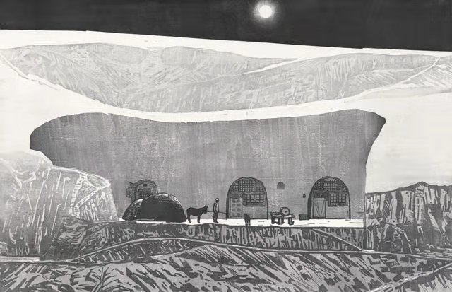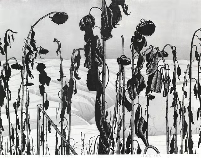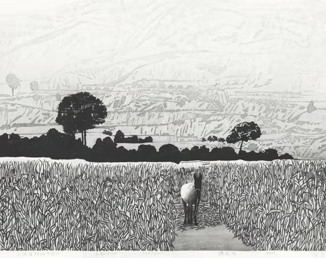 江苏是中国的版画大省,其悠久深厚的历史文化底蕴和近百年来强盛的版画传统从未淡出过世人的视野。尤其是水印木刻版画,在全国乃至全世界都首屈一指。濮存周的水印木刻版画创作,应该说是在学习江苏水印木刻版画前辈名家的基础上起步的。但是,有一点非常值得肯定,那就是他在远摩金陵古版画,近学江苏当代水印名家的过程中,不蹈覆辙、不落俗套,避免了套路中的许多弊端。尤其是他近几年的创作,激浊扬清,更加凸显个性化风格。如果濮存周把早期创作江南风光题材水印木刻版画的成功经验,直接移植到他后来参展中国艺术节的《银晖洒满院》《秋尽·冬韵》和《寒塬》这些作品上,或许就不会带来他作品风格的全面发展和品质提升。因为题材内容之间的较大差异性,很难用一成不变的创作思路和表现手法来体现。江南水乡的幽静疏淡与塞外大地的苍莽俊朗有着本质的不同,这就要求画家具有真切的生活体验和感悟,具有善于发现自然中细节之美的敏感度,还要有不断累积的创作经验和思变求新的聪明头脑,去找寻最贴合、最自然、最具感染力的表现手法来实现自己的艺术创作理想。作为一个优秀的艺术家,最为重要的是如何使自己的思维能力始终处于活跃状态、艺术感受力得到不断加强和提高,促使自己不断去挑战和突破固有的程式和状态,从而让自己拥有一个更为广阔的时空维度去表现。在这方面,濮存周称得上是一位天分极高的艺术家。