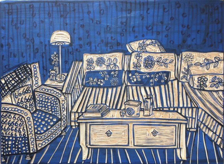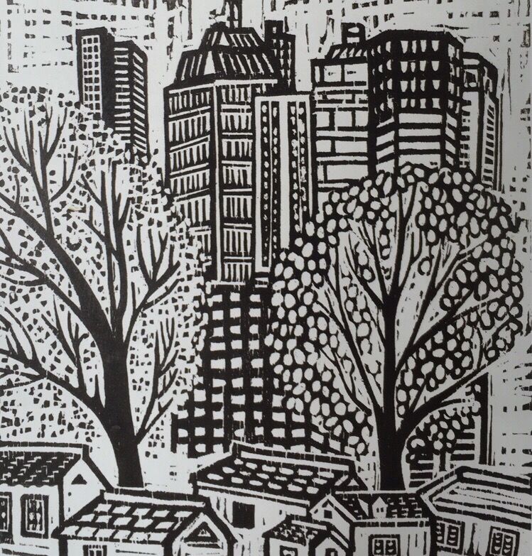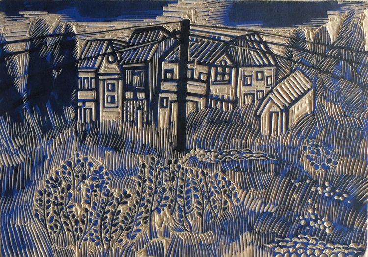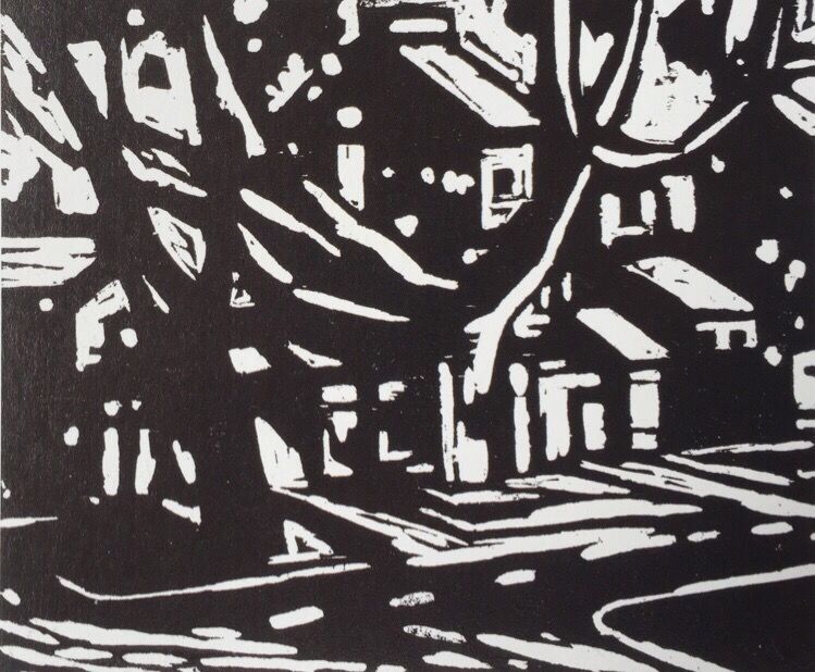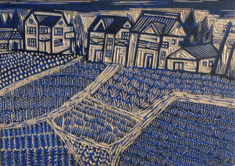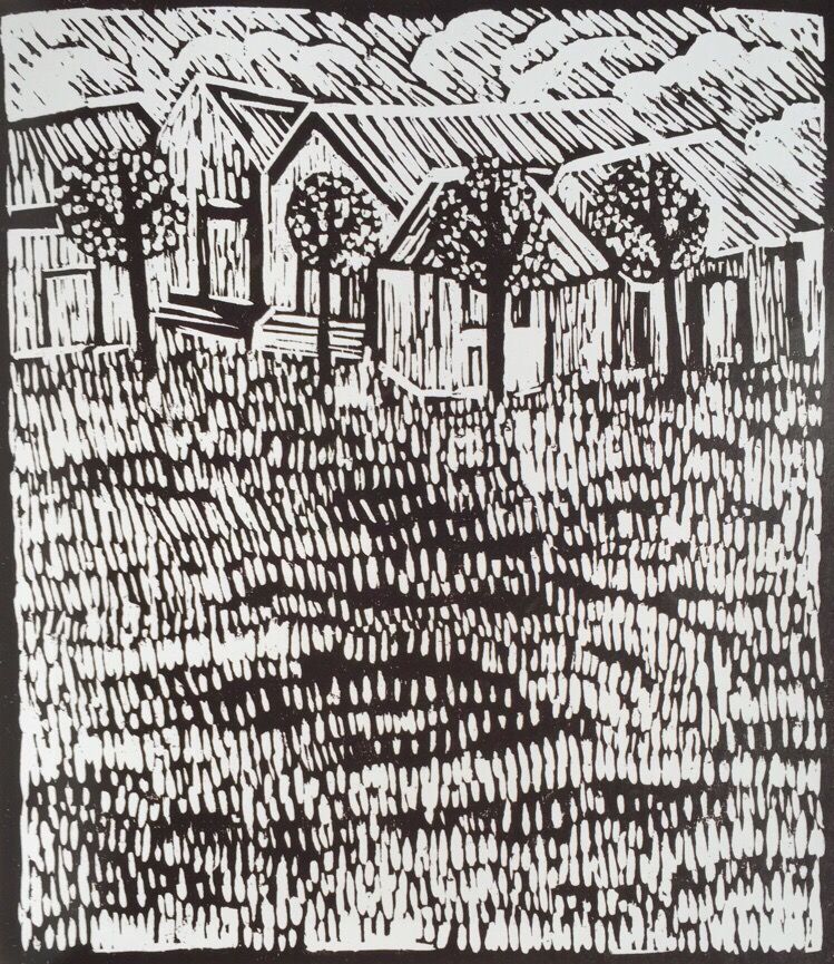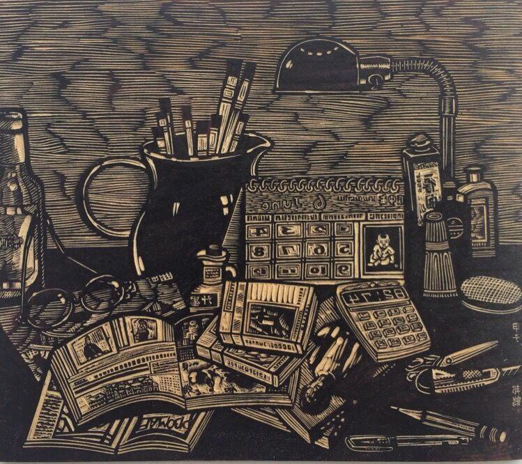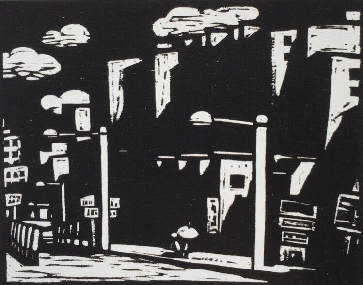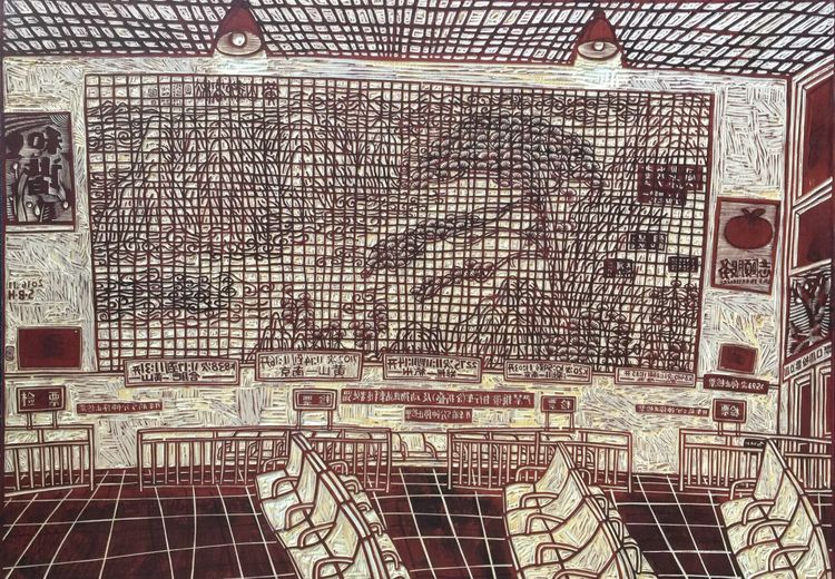 《最后的绿皮列车一一宣城火车站》木刻   43X60cm